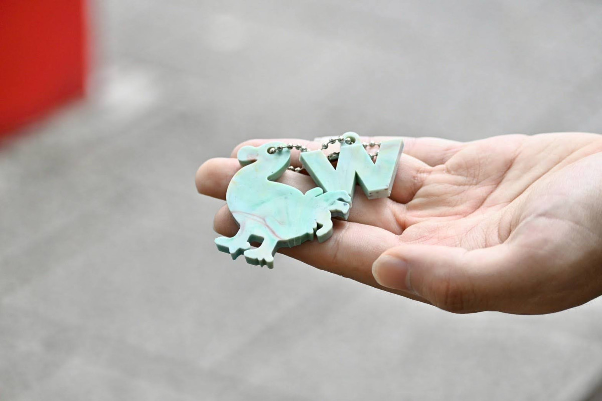 さらに、完成品はボールチェーンで渡すだけではなく、色とりどりの再生プラスチックビーズや3種類のひもを用意し、自由に飾り付けを楽しんでもらえるよう工夫した。