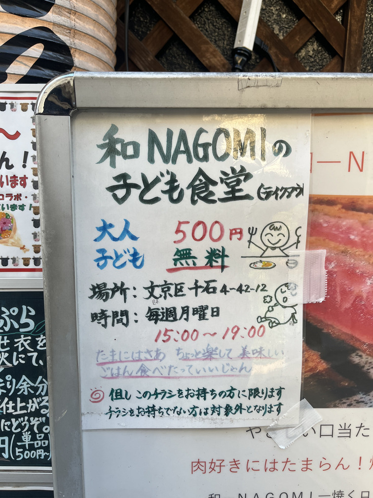2年半ほど前からは子ども食堂も運営する。コロナ禍の影響で食材が余ったことをきっかけに始めたという。一般的な子ども食堂と異なり、社会福祉協議会と連携し、本当に支援が必要な家庭にのみ弁当を届ける形式を取る。店主の赤尾修さんは「普通の人が来てしまうと本当に困っている人に届かない」と話す。チラシと引き換えに弁当を渡す仕組み。