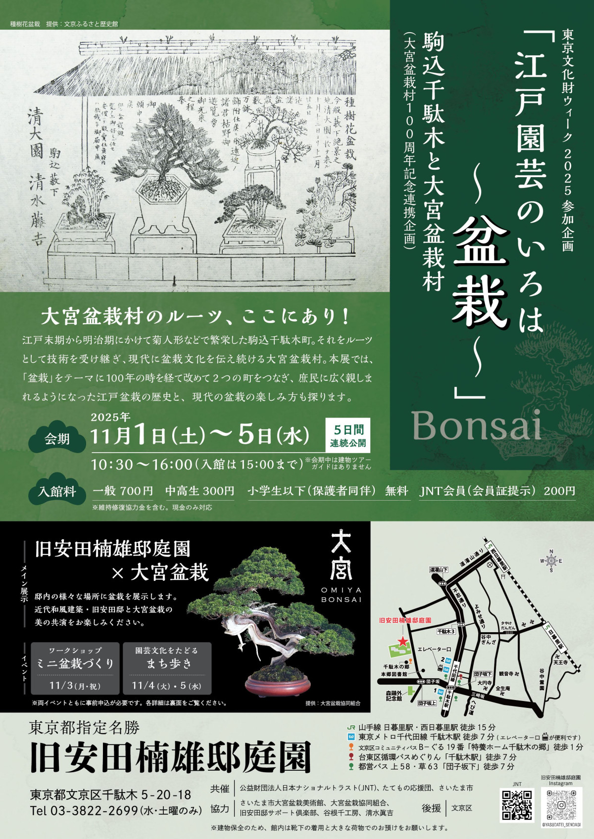「江戸園芸のいろは~盆栽~」展のチラシ(表)