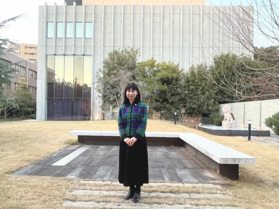 東洋文庫の中庭「シーボルト・ガルデン」と小林敬子さん(広報担当)