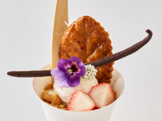 東京ドームシティ(文京区後楽1)のプリズムホールで2月5日に「世界らん展2026-花と緑の祭典-」が始まり、パティシエの辻口博啓さんが監修した限定スイーツも登場した。