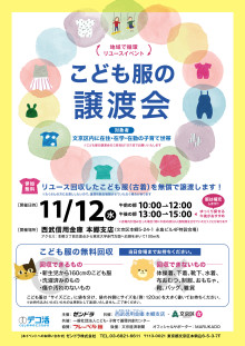 西武信用金庫本郷支店(文京区本郷5)で11月12日、「こども服の譲渡会」が行われる。