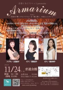 本郷の東京都指定有形文化財「求道会館」(文京区本郷6)で11月24日、クラシックコンサート「アルマリウムVol.2」が開かれる。主催は音楽グループ「音楽くおどりべっと」。
