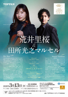 17回目となる今回は、国内外のオーケストラと共演を重ねるバイオリニストの荒井里桜さんと、数多くの国際コンクールで実績を残すピアニストの田所光之マルセルさんが出演。ドビュッシーやプーランクの「バイオリン・ソナタ」、チャイコフスキーの「ワルツ・スケルツォ ハ長調」を披露する。