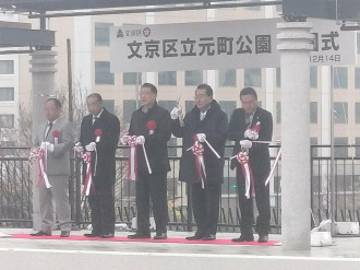 文京・本郷の「文京区立元町公園」(文京区本郷1)のリニューアル工事が終わり、12月14日、開園式を兼ねた記念イベント「もとまちフェス2025」が、同園と元町ウェルネスパーク一帯で行われた。