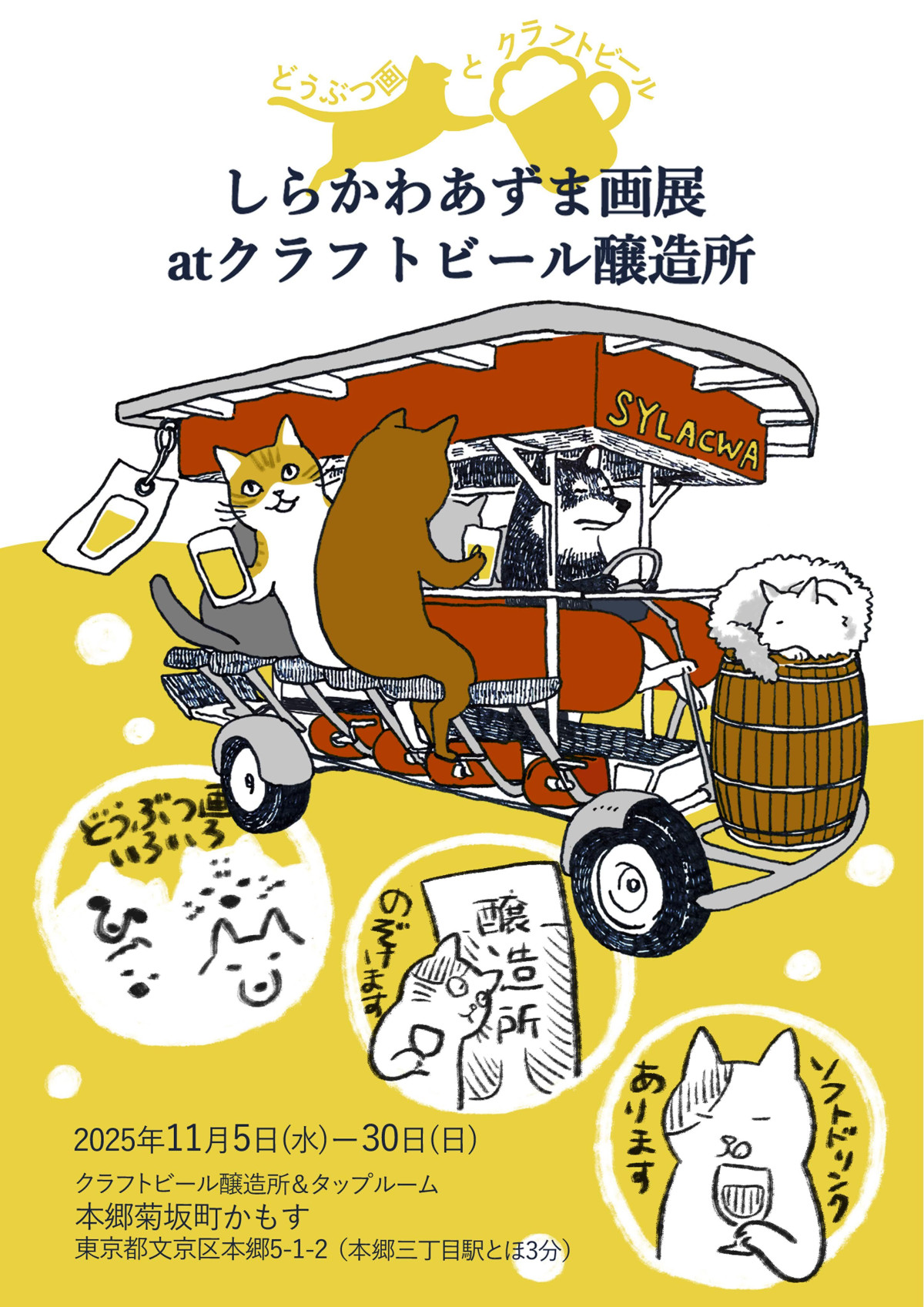 文京・本郷のクラフトビール醸造所「本郷菊坂町かもす」(文京区本郷5)で11月5日から、画家しらかわあずまさんの作品展「ビール醸造所でしらかわあずま画展」が開かれる。