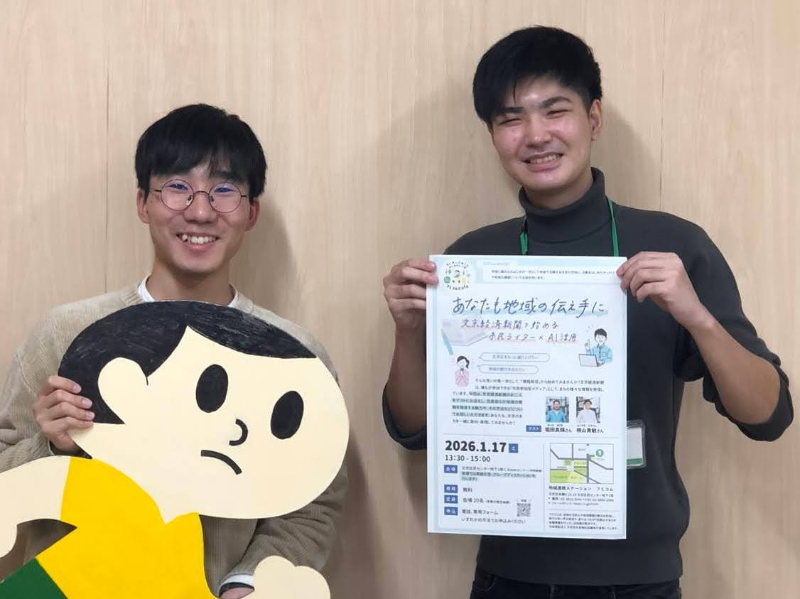 今回のイベントを企画したフミコムcafeの沖久保皓生さん(右)、朝原優真さん(左)
