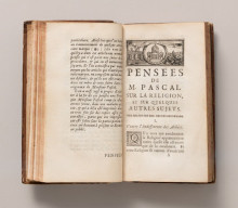 パスカル「瞑想録(パンセ)」初版(1670年、印刷博物館蔵)。「人間は考える葦である」の名言で知られる哲学書の実物