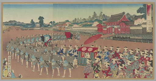 赤門建立のきっかけとなった徳川11代将軍・家斉の娘、溶姫の輿入れを描いた浮世絵